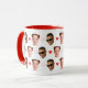 Valentine's Day mug for a girlfriend or boyfriend, personalized with 2 cut-out face photos of the couple. Design with romantic little red hearts.