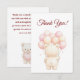 Express heartfelt thanks with this watercolor teddy bear and pink balloons baby shower thank you card.