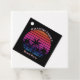 Cool custom beach sunset party favor tags for a destination wedding or family luau on an island. Cute personalized tropical black tags featuring a pretty pink sky behind beautiful palm trees on the coast.