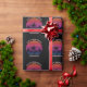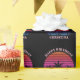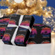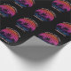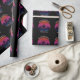 Cool custom beach sunset birthday party wrapping paper with a cute island pattern. Cute personalized tropical gift wrap in black featuring a pretty pink sky behind beautiful palm trees on the coast.