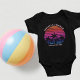 Cool matching beach trip black baby bodysuit for an island cruise or coastal bachelorette party. Features beautiful palm trees in front of a pretty pink beach sunset on a cool tee. Perfect custom infant outfit for your summer trip to the coast.