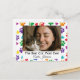 Show the world who the #1 Cat Mom is with this vibrant, customizable postcard. The design features a playful border of watercolor-style paw prints and hearts in a rainbow of colors, framing your favorite photo of you and your cat.
