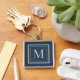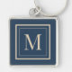 Custom Blue & Vanilla Framed Monogram Fyrkantig Silverfärgad Nyckelring