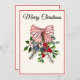 Custom, Bow Berries & Foliage Flat Christmas Card Julkort