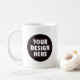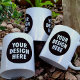 Personalized, two-sided branded coffee mug featuring your custom design and business logo. Easily personalize by adding your logo to the black circular/round placeholder on both sides. Perfect for showcasing your brand in a sleek, professional design, this mug serves as an excellent promotional item or thoughtful gift.