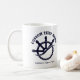 This elegant nautical emblem features a classic ship captain's wheel interwoven with a dynamic wave and rope detail, all rendered in a deep navy blue. Symbolizing leadership, adventure, and life at sea, this design is perfect for boat captains, sailors, yacht enthusiasts, and maritime lovers