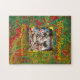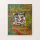 Custom Christmas Green Red Gold abstract marbled Pussel