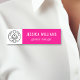Make a bold and energetic statement with this custom name tag, defined by a vibrant hot-pink accent panel that ensures maximum visibility. The employee's name and title are displayed clearly in contrasting white text, ensuring quick recognition against the bright background. A separate white square on the left is perfectly reserved for showcasing your company logo, creating a dynamic, modern, and instantly recognizable professional identity.
