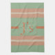 Custom Coral Sage Stripe Monogram Boho Pastel Chi Kökshandduk