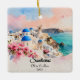 Celebrate a love that spans the globe with this elegant, double-sided ceramic ornament. Featuring a stunning hand-painted watercolor illustration of the iconic blue-domed churches of Santorini, this keepsake is the perfect way to commemorate a destination wedding, a romantic honeymoon, or a dream vacation.