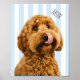 Celebrate your furry best friend with this personalized dog photo wall art. Featuring your dog’s photo and custom name on a soft blue striped background, this modern pet portrait adds warmth and personality to any space.
