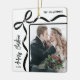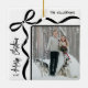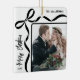 This double-sided Christmas ornament gives you the choice to feature a different photo on each side or use the same one for a matching look. A hand-drawn coquette bow sits in the top left, with soft ribbon lines running across the top and down the left edge for a simple decorative touch. “Merry Christmas” sits vertically along the bottom left, with the date tucked just beneath it. Your name appears in the top right to keep the layout balanced and easy to read.