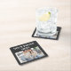 Square coaster featuring a dark base and a central photo insert. The design is minimalist, with the text "YOUR PHOTO HERE" framing a sample image of a happy family. It is a functional home accessory that allows you to keep precious memories close at hand on your table or desk.