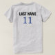 Custom Front and Back Football T-Shirt - shown in Athletic gray Design features script "Football" with text that can be customized for the team name, player last name, and jersey number. Blue,black and charcoal gray colors can be customized.
