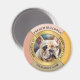 Celebrate your favorite four-legged friend with this elegant, personalized French Bulldog magnet. Featuring your own Frenchie (or keep this lovely portrait) encased in a sophisticated gold-toned circular frame, this design brings a touch of "pawsitive" energy to any refrigerator or locker.