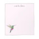 Pretty custom note pad featuring a Female Blue-throated Starfrontlet Hummingbird. The font style, font size and color can be changed by clicking on "Edit this design." The Blue-throated Starfrontlet females have a buffy throat, a purplish-pink belly, and a long straight bill. They can be found in montane forests, edges, and gardens of the Andes of Colombia.