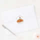 Cute custom hand-painted Thanksgiving sticker featuring a rufous hummingbird and pumpkins.