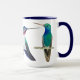 Custom mug for hummingbird lovers featuring a hand-painted Mexican Violetear Hummingbird, a female Ruby-throated, a Long-billed Star-throat and a Broad-billed Hummingbird. Personalize with your name. The font style and font size can be changed by clicking on "Edit design."