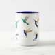 Custom mug for hummingbird lovers featuring hand-painted Mexican Violetear and Velvet-purple Coronet Hummingbirds. Personalize with your name. The font style and font size can be changed by clicking on "Edit design."