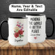 Honor the incredible woman born in June with this elegant custom mug featuring her birth month flowers—Roses & Honeysuckle. One side displays her name beneath a timeless floral illustration, while the other side reads: “Making the world a better place since [year].”