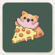 Custom Kawaii Cat Hugging Pepperoni Pizza Cartoon Underlägg Papper Kvadrat