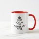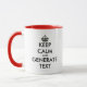 Custom keep calm coffee mug text generator. Cool cup with your own funny meme parody. Available in different combo colors. Double sided print with modern typography and crown.