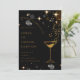 Elegant and stylish invitation card for a cocktail-themed party. Featuring a sophisticated black background with shimmering gold accents, sparkling stars, and a classy cocktail glass illustration, perfect for upscale corporate or social events.
