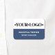 This stylish dark blue Logo Employee Name Tag is easily customizable with your logo, name, and job title. There are options for a traditional pin back or a magnetic fastener.