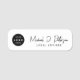 Elegant minimalist modern business company corporate staff professional identification magnetic or safety pin plastic handwritten script name tag template with custom company logo. ++++++++++++ Easy to personalize with your image, employee's name, and job title.