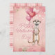 Happy Valentine's Day romantic card with a personalized message and a meerkat illustration with heart balloons. Pink and red background with a plaid backing.