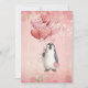 Happy Valentine's Day romantic card with a personalized message and a penguin illustration with heart balloons. Pink and red background with a plaid backing.
