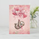 Happy Valentine's Day romantic card with a personalized message and a sloth illustration with heart balloons. Pink and red background with a plaid backing.