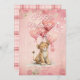 Happy Valentine's Day romantic card with a personalized message and a tiger illustration with heart balloons. Pink and red background with a plaid backing.
