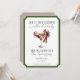 The classic green frame, modern typography, and personalized host line (“Santa says: It’s party time at…”) create a warm and stylish invitation that feels both chic and inviting. The reverse side features a coordinating red and green diagonal stripe pattern for a cohesive holiday look.