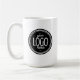 A personalized two-sided branded coffee mug with your business's professional logo on it. Just fill in the black round placeholder image space with your company's logo.