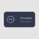 This is a modern, monogram, navy and silver custom business name badge design. This simple, stylish design is in classic navy with stylish silver colored typography script. You can keep the monogram logo or add your own and the template is set up for you to simply add your monogram initials (or logo), employee's name and business name. Ideal for a professional, minimal, and elegant custom branded name tag. To personalize, simply add your details by using the personalize this text box. To change the color or font, check out the design editing tool. If you need help with personalization, matching products, or for a custom design contact me via zazzle chat.