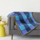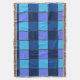 Refresh your space with this cool and contemporary "Blue Mosaic" pattern. The artwork features a grid of squares in a monochromatic palette of navy, royal blue, and cyan, creating a look reminiscent of classic swimming pool tiles, retro 8-bit video game graphics, or a modern patchwork quilt.