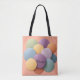 This elegant customizable tote bag features beautiful 3D circles in softly muted tones including dull green, purple, orange, blue, yellow, violet, and turquoise. Add any name to create a stylish and thoughtful gift for birthdays, holidays, or everyday use. A modern personalized gift for friends, family, or coworkers.