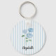 Custom Name Blue Hydrangea Painting Stripe Nyckelring