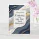This elegant employee work anniversary design celebrates one years of service with a personalized name featured on the front. Flowing navy and gray shapes, refined gold accents, and a clean cream center panel create a polished presentation suitable for professional recognition. Designed to honor commitment, dedication, and continued contributions, it is a meaningful way to recognize an employee reaching their one-year work anniversary.