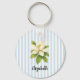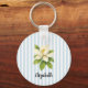 Enjoy our custom name magnolia painting blue stripe keychain.