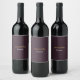 Custom name minimalist modern burgundy vinflaska etikett