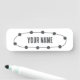 A hand-drawn oval name tag framed with evenly spaced dots for a playful yet balanced look.