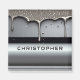 Polished chrome nameplate reading NAME with dripping liquid metal and strong reflective highlights. Embossed 3D typography on a sleek dark background evokes luxury, modern branding, industrial design and custom identity.