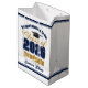 Customize your own navy blue and gold high school Class of 2026 graduate gift bag for a high school or college graduation party. Cool varsity letters for the year on a great custom commemorative present bag for seniors.