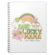 Journal your goals in this One Lucky Mama notebook featuring vibrant groovy colors and cheerful green clovers. This customizable St Patricks Day journal is perfect for manifesting lucky girl syndrome and staying organized. Add your name to create a unique lucky mama gift that brings instant charm and laughter to your workspace. A vibrant green holiday notebook that highlights your lucky era with retro Irish style.