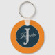 Modern custom orange Light greay ocean blue Monogram keychain.