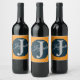 Custom orange greay blue Monogram Elegant Vinflaska Etikett