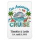Tropical cruise anniversary design featuring a ship, palm trees, and floral accents. Personalized anniversary stateroom door marker with names and date for a romantic celebration. Please note: Not all ship's doors are magnetic. We cannot guarantee your door will be magnetic. Please check with your travel agent, the cruise line, or via forums.