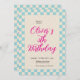 Custom Pastel Blue Checkered Birthday Party Inbjudningar